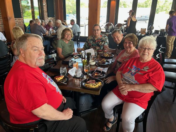 Mid Atlantic Thunderbird Club arranged a meet up for lunch with Lehigh Valley Thunderbird Club and Central PA Thunderbird Club to celebrate Thunderbird Appreciation Day May 18, 2025. We had magnificent weather and ate a prime rib brunch at John Wright Restaurant in a restored factory. There were 42 people and 18 Thunderbirds! Many of us wore tshirts and hats with the 70th anniversary logo that Tom Przedwojewski designed.